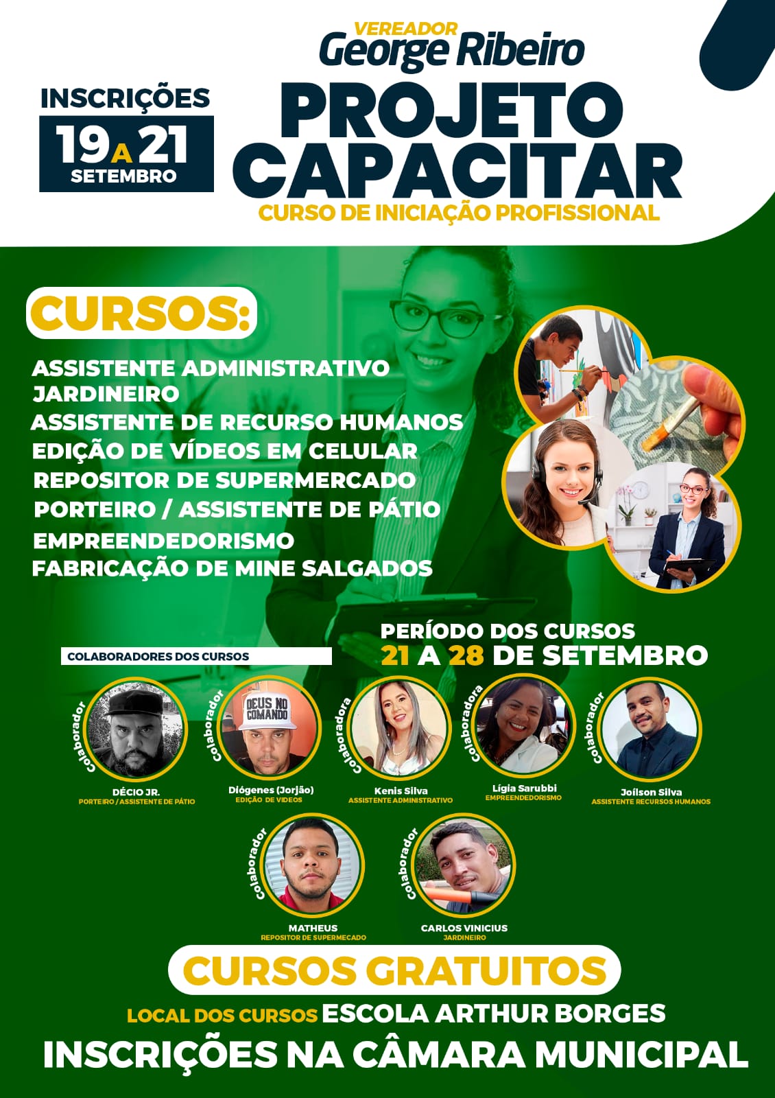 Legislativo: Vereador George Ribeiro através do Projeto Capacitar abre inscrições para cursos gratuitos.