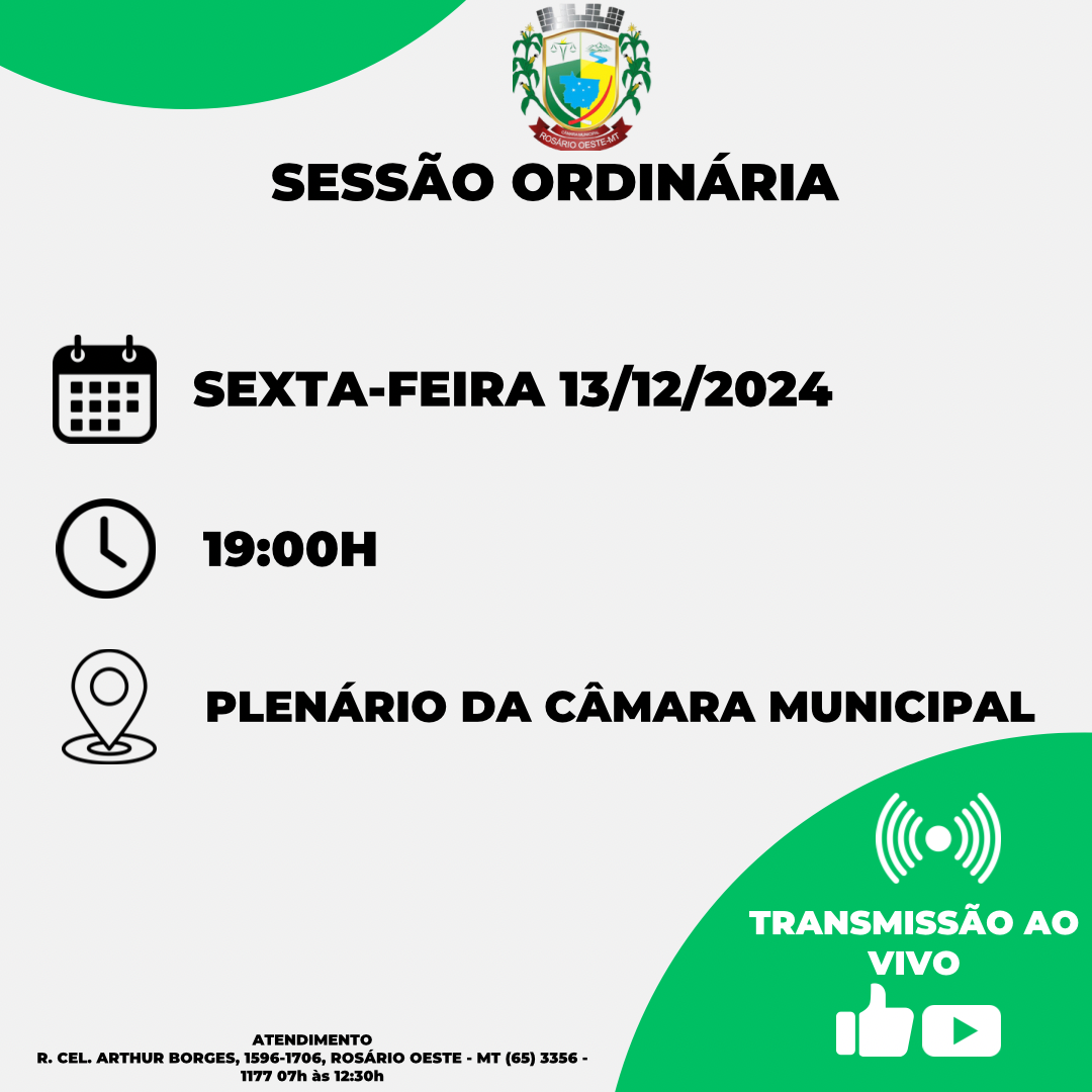 PAUTA DA SESSÃO ORDINÁRIA DO DIA 13 DE DEZEMBRO DE 2024.