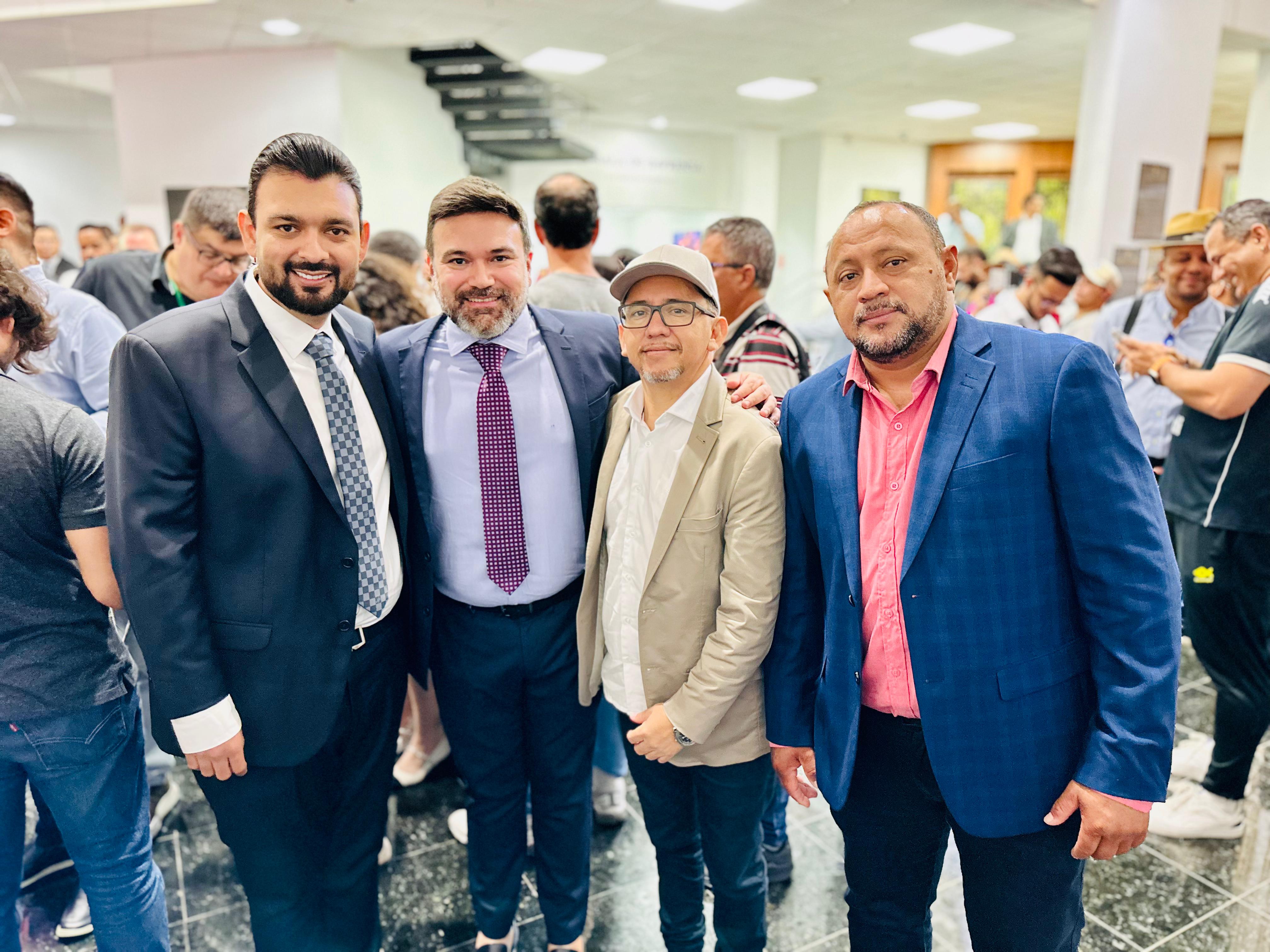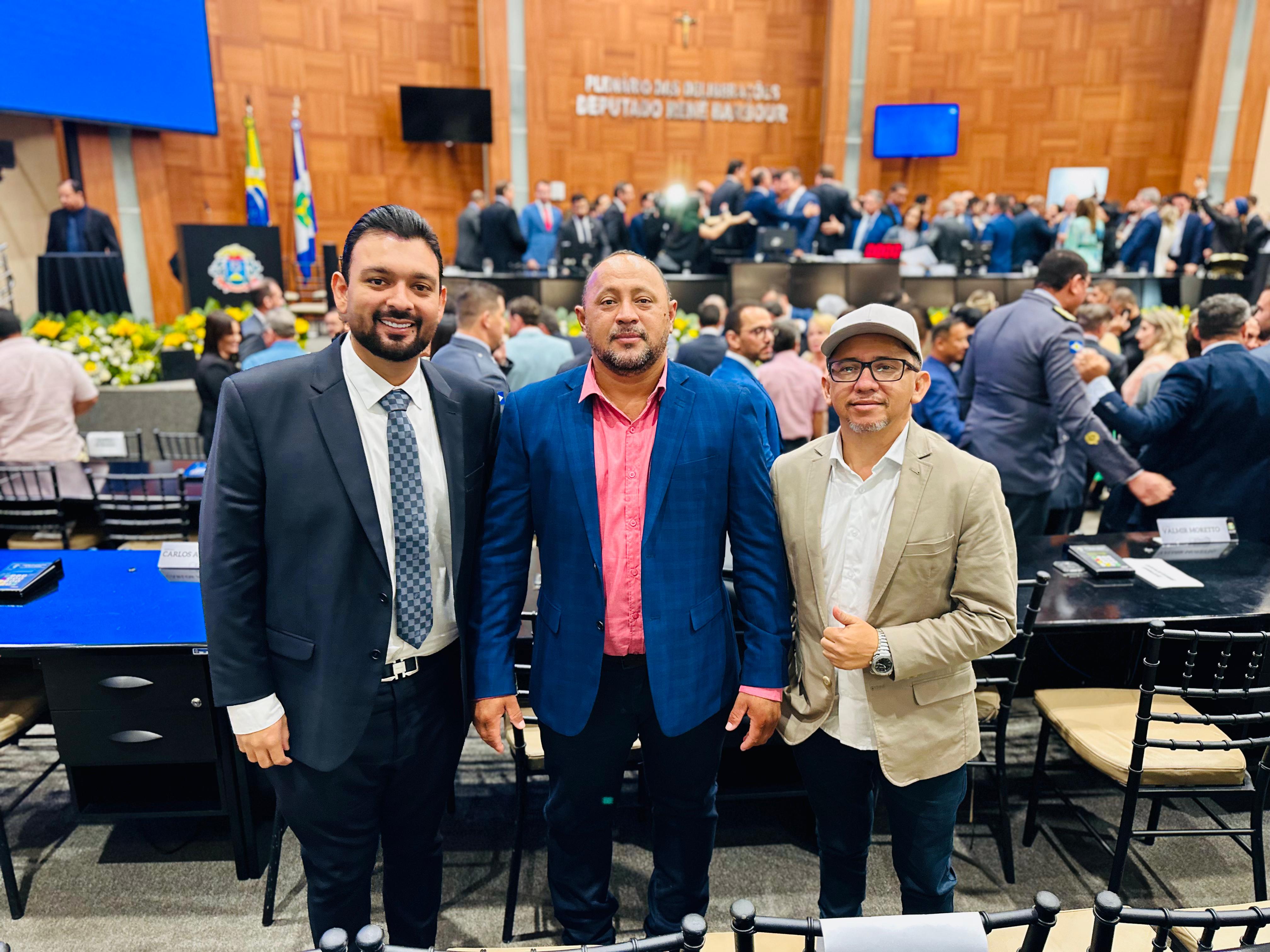 O Presidente da Câmara Municipal de Rosário Oeste-MT, Amilson da Distribuidora, e o Vereador Edinaldo Gigio, juntamente com Prefeito de Jangada-MT Rogério Meira, marcaram presença na solenidade de posse da nova Mesa Diretora da Assembleia Legislativa de Mato Grosso (ALMT), realizada nesta segunda-feira (03/02)