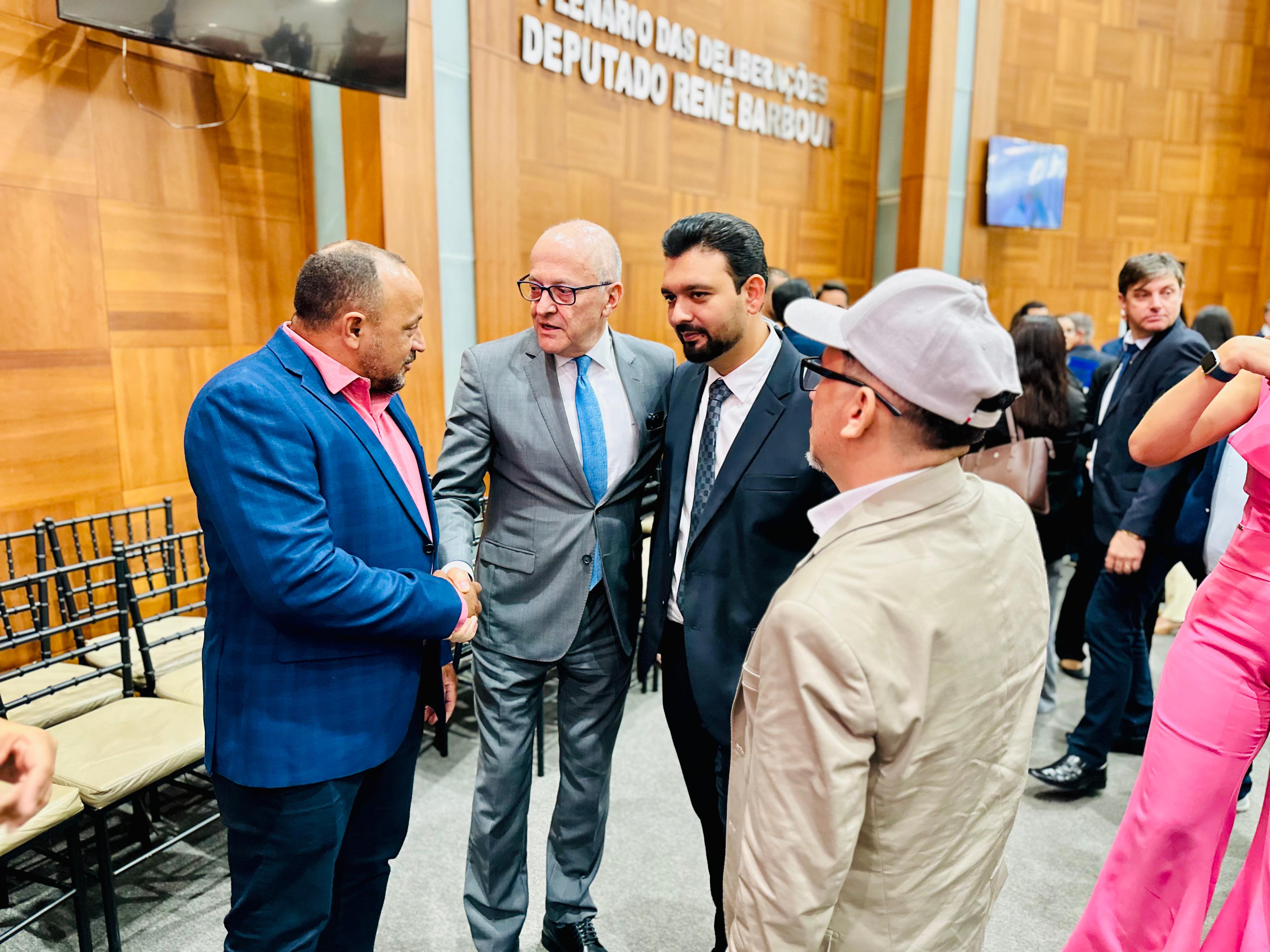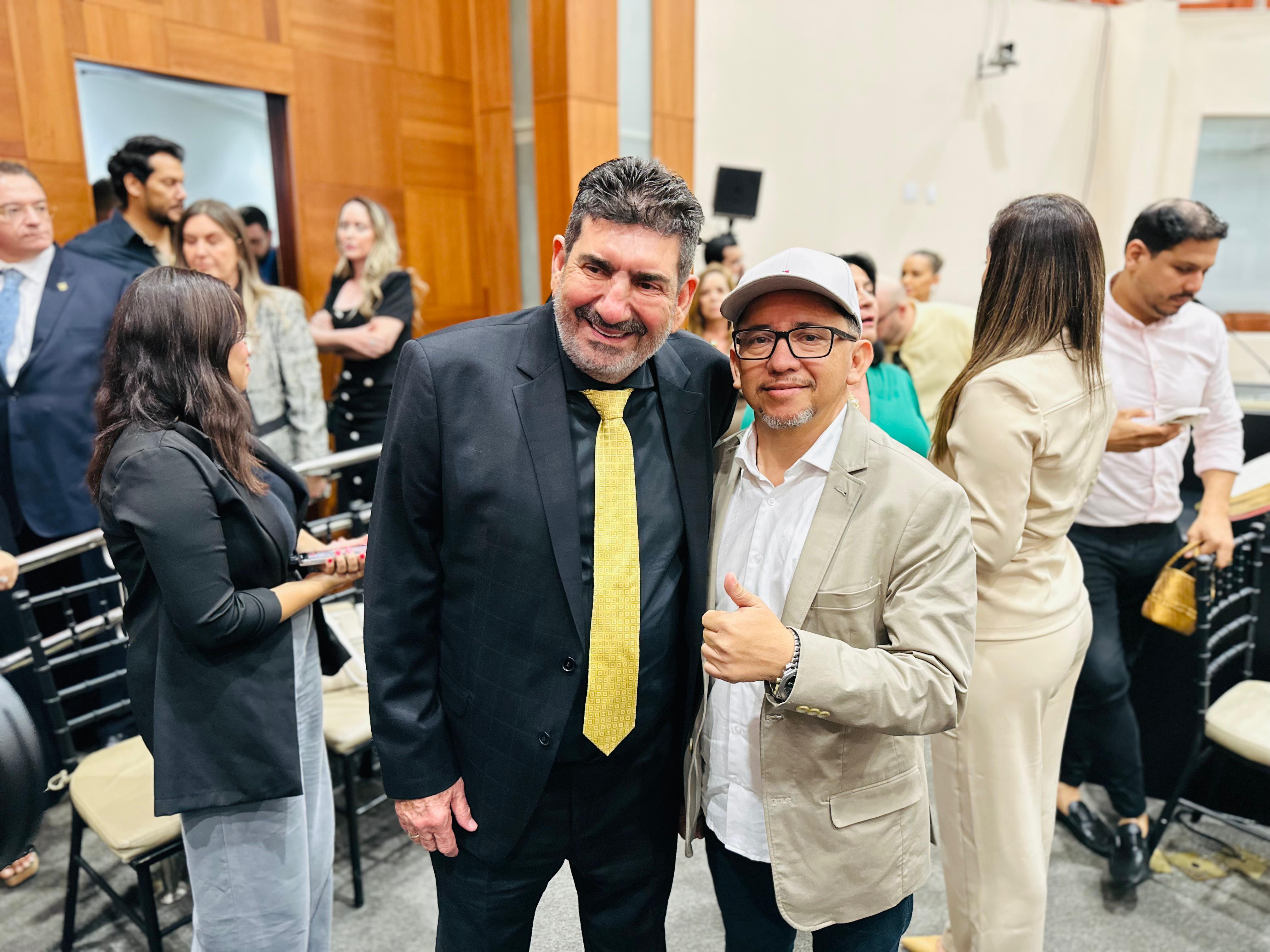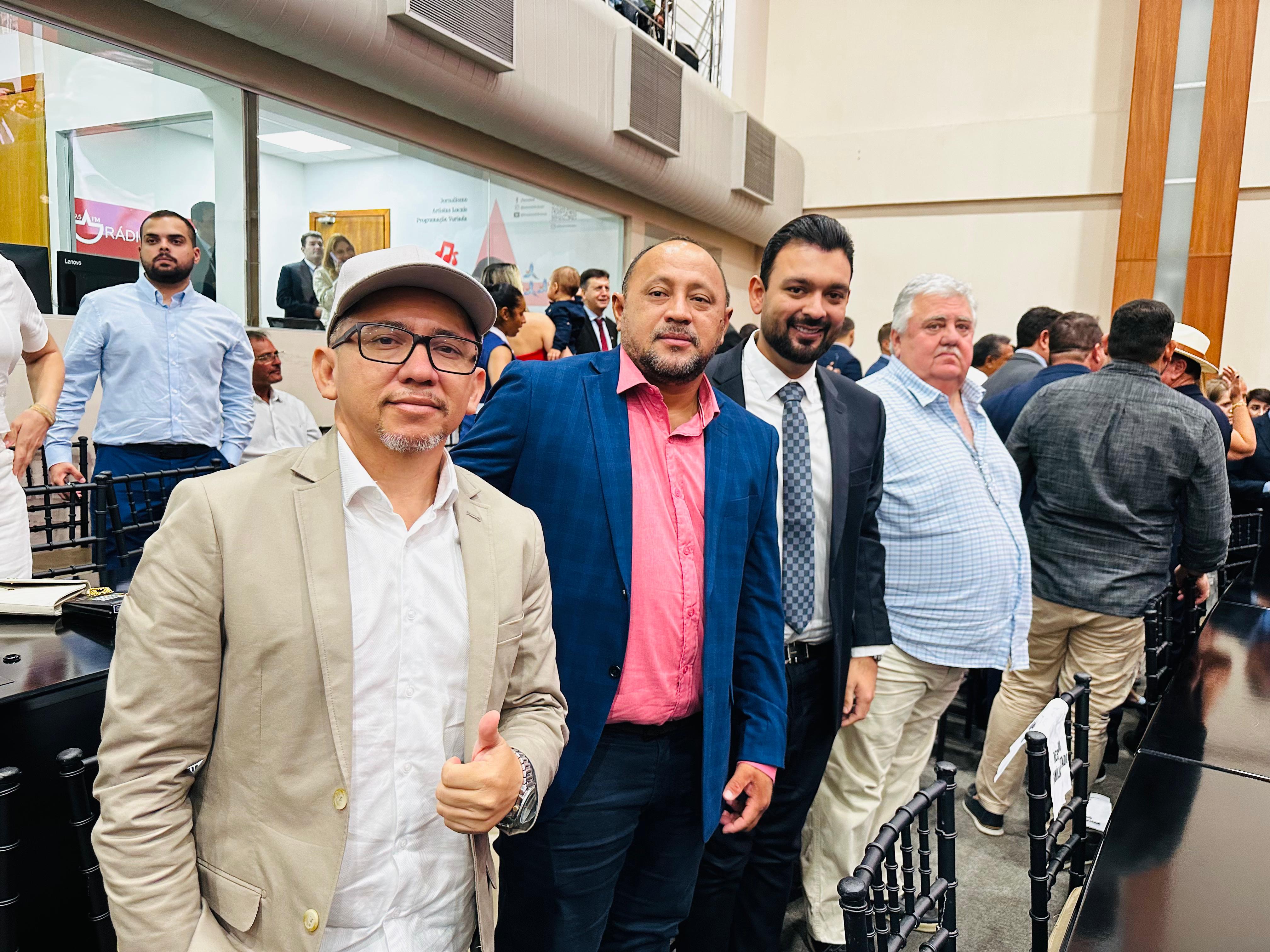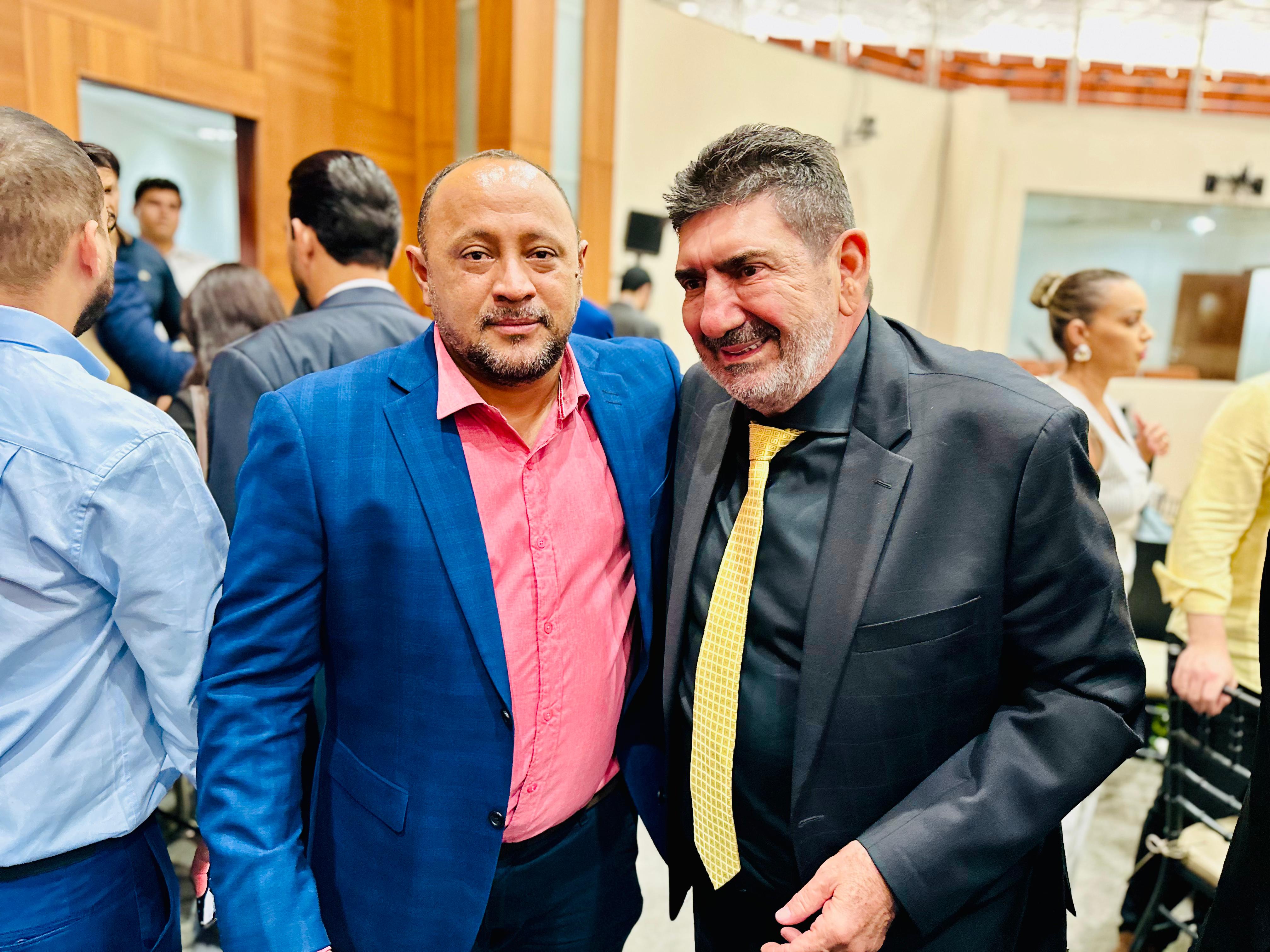 Presidente da Câmara Municipal, Amilson da Distribuidora, e Vereador Edinaldo Gigio Participam da Solenidade de Posse da Nova Mesa Diretora da ALMT