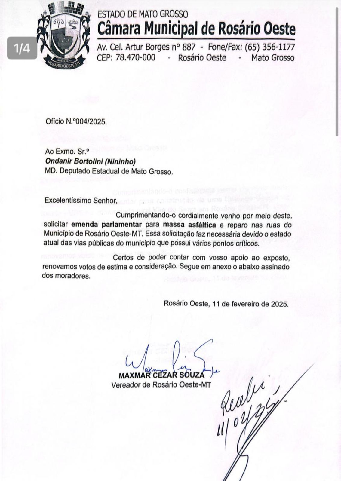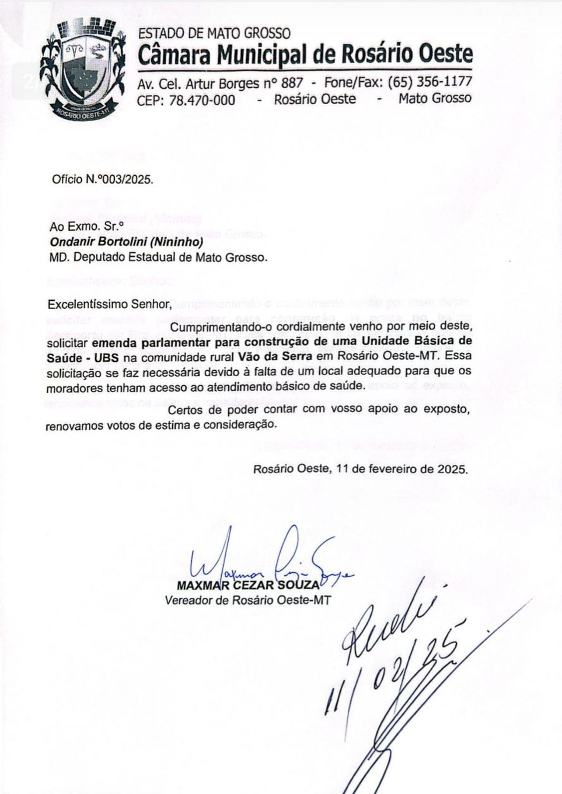 O deputado Nininho ouviu atentamente as solicitações e reafirmou seu compromisso em trabalhar para garantir recursos e apoio institucional para Rosário Oeste. O parlamentar se comprometeu a analisar as demandas e buscar meios para atender às principais necessidades do município.