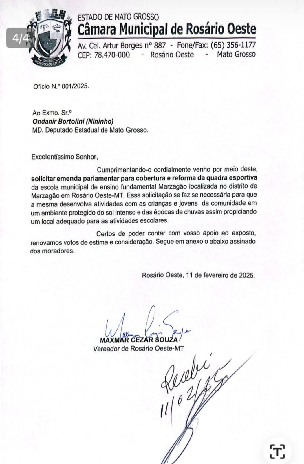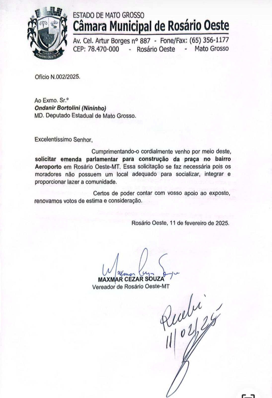 Durante a reunião, Maxmar Cesar apresentou uma série de demandas voltadas para infraestrutura, saúde e educação, ressaltando a importância do apoio parlamentar para viabilizar investimentos e ações que beneficiem Rosário Oeste. “Nosso compromisso é buscar melhorias concretas para a cidade, e o apoio do deputado Nininho será fundamental para avançarmos com projetos que atendam às necessidades da população”, destacou o vereador.